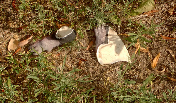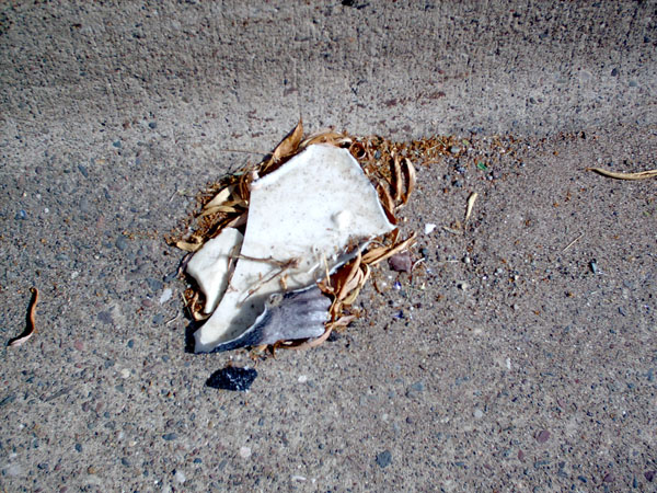I went running one day in the suburbs of St. Paul, thoughts of broken things filling my head. I stumbled across the smashed corpse of a plaster dog and promised to return with camera to document the scene of the crime. When I returned, most of the dog was gone. instead, I took pictures of the two remaining paws.
